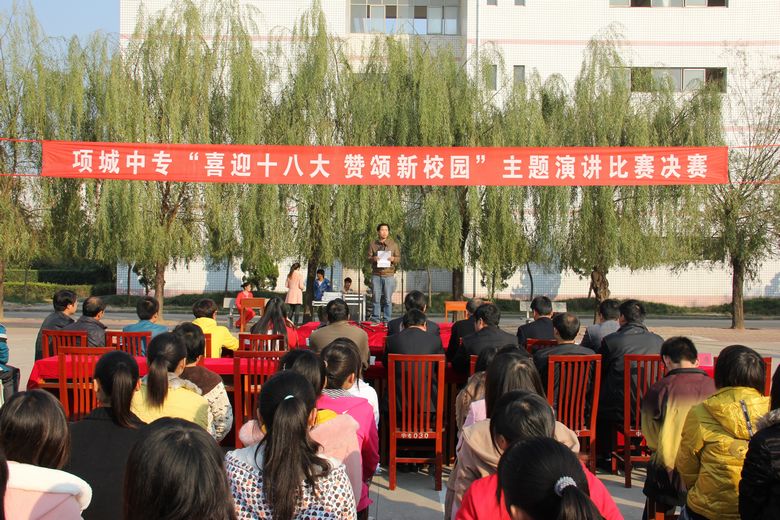 2012年11月6日,在中国共产党十八届代表大会即将召开之际,我校举行了以“喜迎十八大、赞颂新校园”为主题的学生演讲比赛。