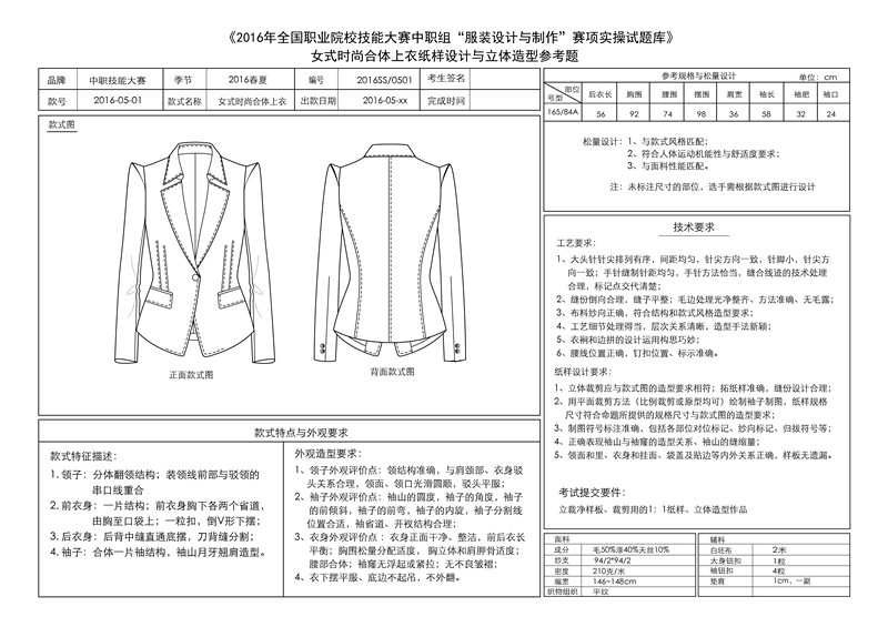 2016年9月服装技能大赛立体裁剪试题2016年9月服装技能大赛立体裁剪试题
