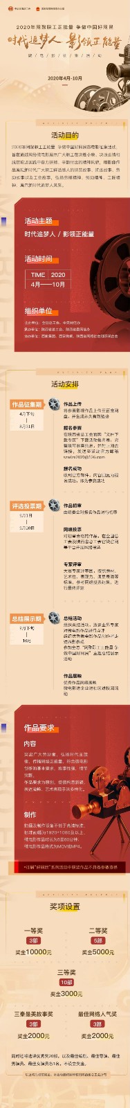 2020年全国职工“网络正能量微电影”征集活动开始啦!河南省总工会 2020年全国职工“网络正能量微电影”征集活动开始啦!奖项超丰富···