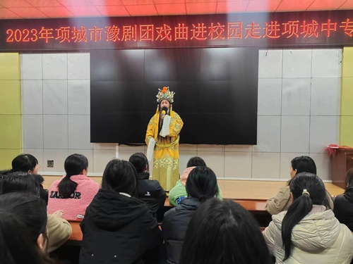 戏曲进校园之走进项城中专为继承和弘扬中华戏曲文化,培养师生对戏曲艺术的兴趣与爱好,近日,项城市豫剧团“戏曲进校园”演出活动在项城中专进行。戏曲中绚丽多彩的服饰,···