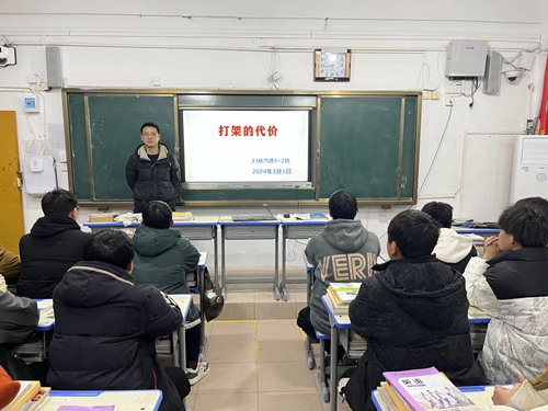 项城中专召开“打架的代价”教育班会为加强校纪校风建设,构建和谐校园,树立良好的校风、班风、学风,3月3日晚上,项城中专特此召开主题为:打架的代价班会。班会目的:1、···