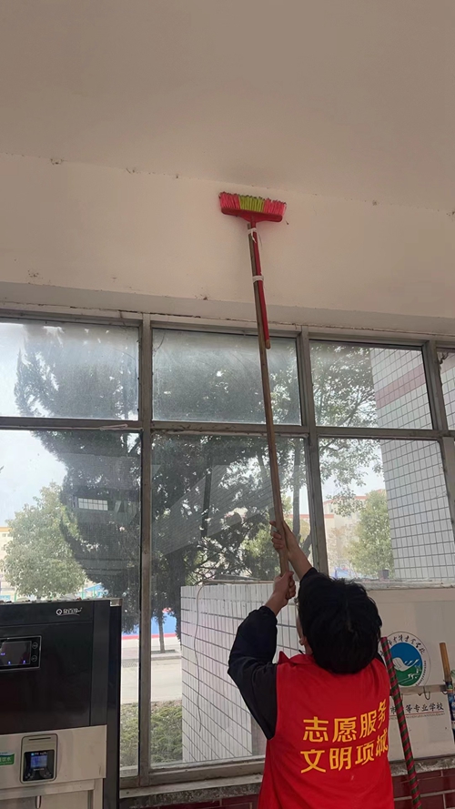 “学雷锋,树新风”志愿者活动之扫蛛网为了让“学雷锋、树新风”活动持续开展,落到实处,深入学生心中,项城中专学生会生活部成员志愿者自发寻找活动内容,清扫教学楼墙角···