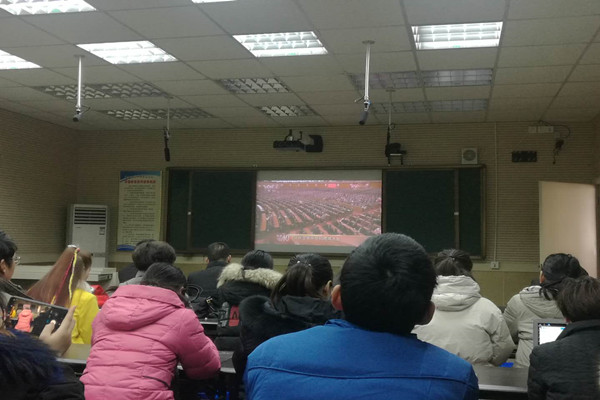2018年12月18日上午9点40分,项城中专组织没课教师在三楼录播室观看改革开放四十年会议,中共中央总书记、国家主席、中央军委主席习近平发表重要讲话。