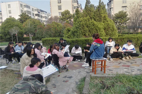2019年3月20日上午,项城中专东花园格外热闹,多位学生和老师当起了模特,18秋工艺班30多位学生为模特们画像。