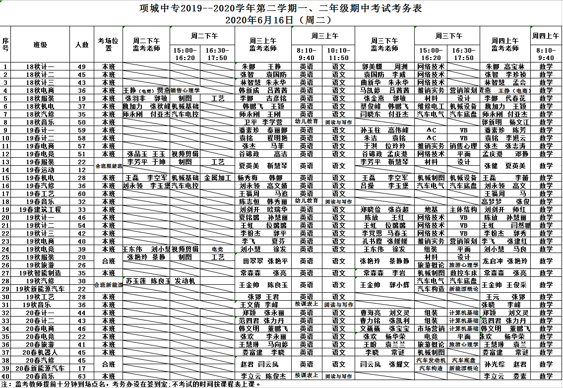 2019年1月6日——1月8日上午,项城中专2019--2020学年举行第一学期一、二年级期末考试。