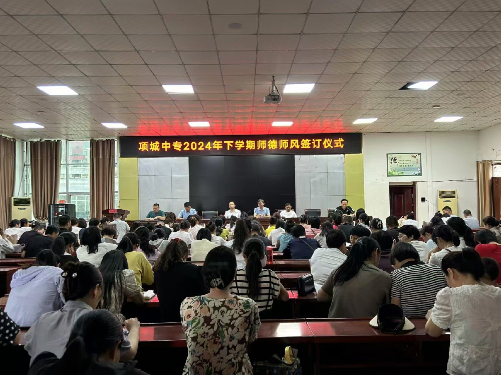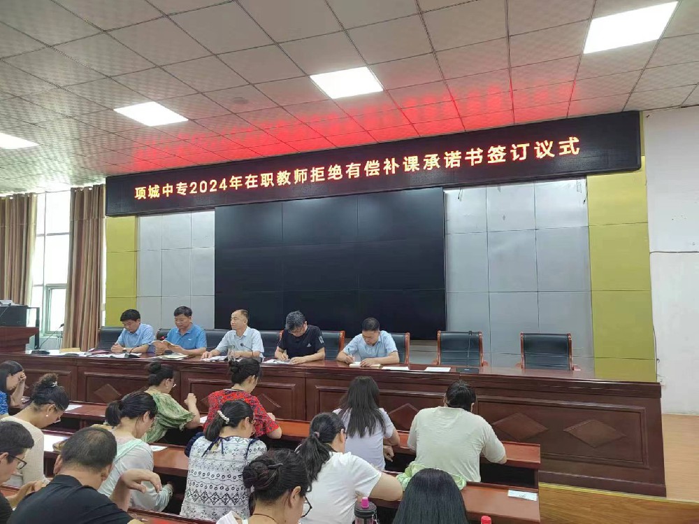 为进一步加强教师师德师风建设,规范教师从教行为,6月24日下午,项城中专2024年在职教师拒绝有偿补课承诺书签订仪式在五楼会议室举行。会议上,副校长张成礼带领全体教师认···