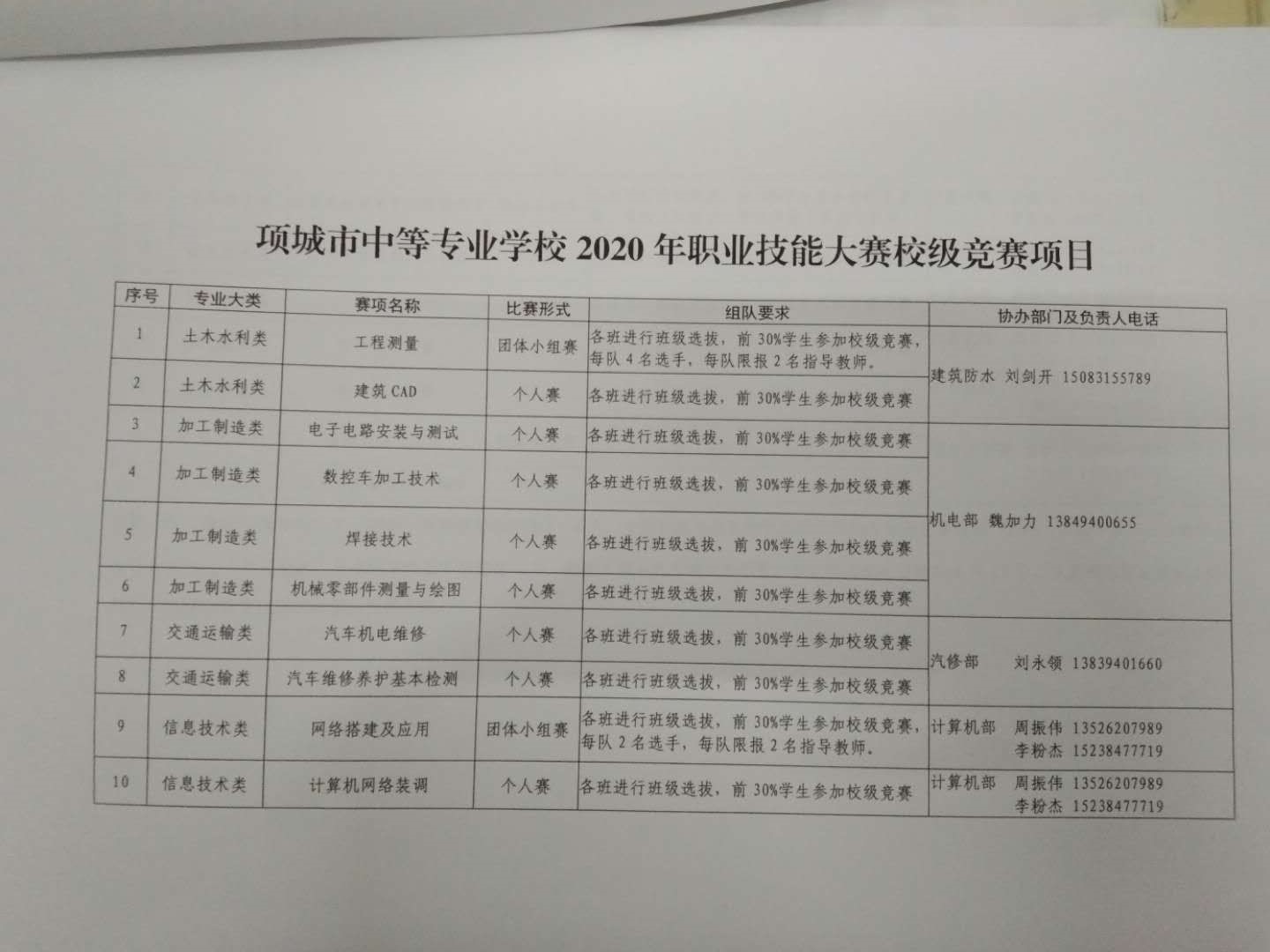 各科室、专业部、教研组: 根据《河南省教育厅关于开展2020年河南省中等职业教育技能竞赛活动的通知》(教职成〔···