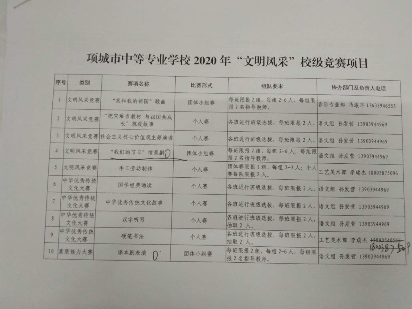 为了使我校文明风采大赛有序的举行,教研室制定了详实的活动方案,赛项由我校各组部协办,明确人员分工,确定工作职责,为活动的顺利进行···