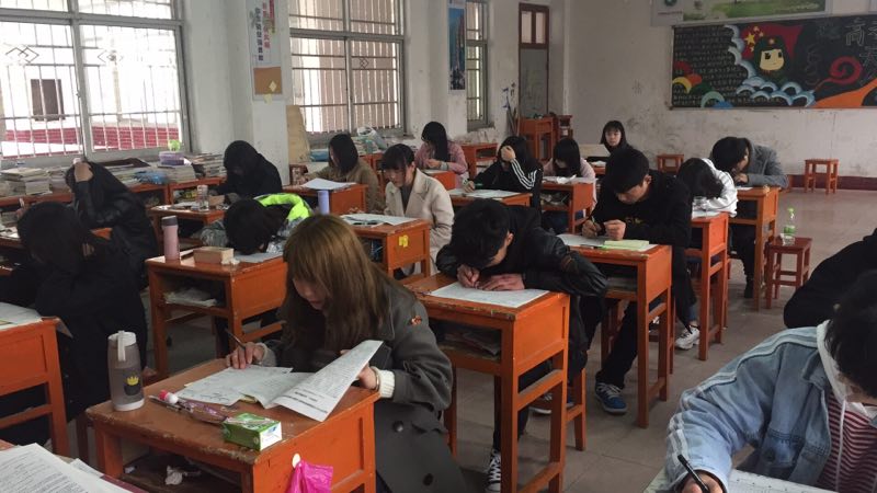2018年3月15日,学校三年级举行了月考,三年级的学生都认真做题,积极为高考做准备。