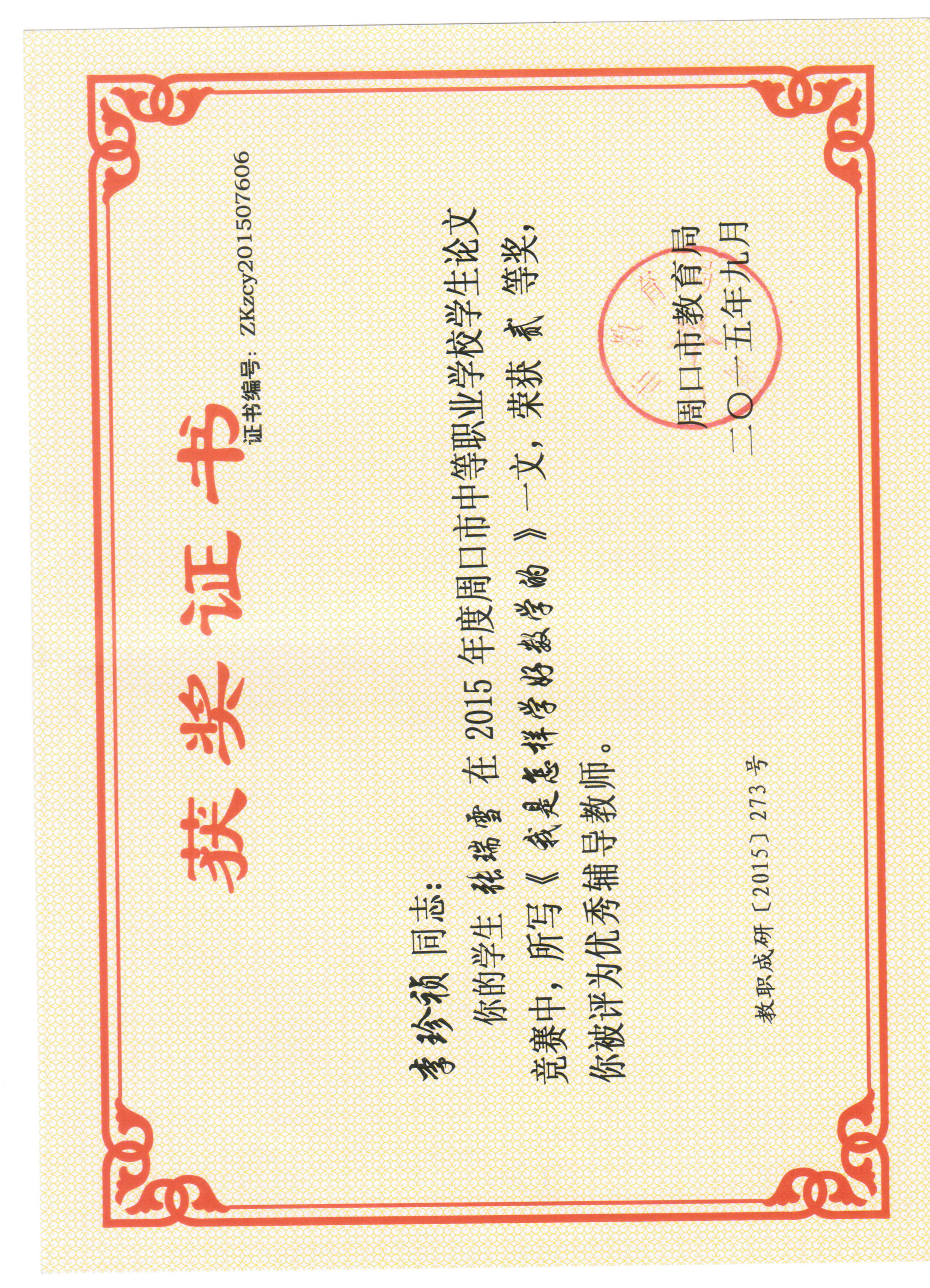 2015年8月,数学组教师李珍祯、姚伟伟和李旭云以团体形式代表我校前往郑州参加河南省中等专业学校信息化教学设计大赛,并取得优异成绩。