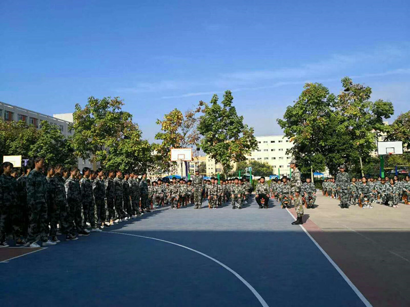我校新生在军训期间的一些精彩瞬间! 踏着铿锵的步伐,在进行方阵练习 新生在进行叠被子训练!