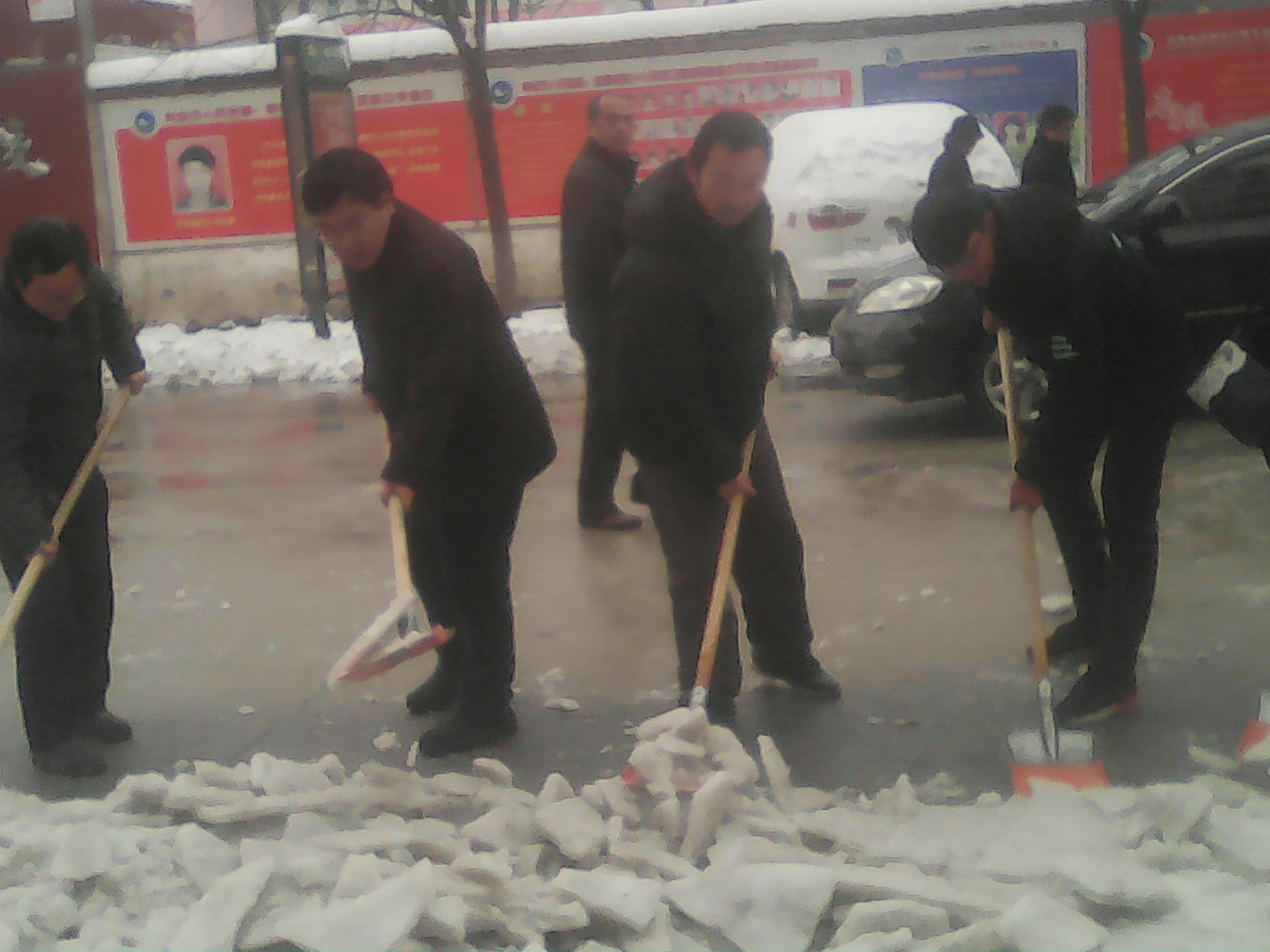 2018年1月7日全天,我组教师张健、王艳蕊、韩鹏飞积极响应学校号召,为给项城市民出行创造一个良好的外部环境,在我校领导的带领下第三次同我校的志愿者一起走上街道,冒着严寒,不怕苦不怕累,清除正泰路上的积雪和冰块。