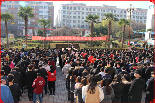 2017年12月11日,我校2017年秋季运动会总结暨表彰大会在国旗下举行。本届运动会在校团委、政教处以及体育组的认真筹划下,各专业部进行了积极认真的准备。本届运动会各专业部的同学均取得了较好的成绩,其中计算机专业部取得了25个一等奖、53个二等奖的好成绩;机电专业部取得了12个二等奖的成绩;工艺专业部取得了5个一等奖、15个二等奖;音乐专业部取得了1个一等奖、6个二等奖的成绩;汽修专业部取得了4个一等奖、12个二等奖的成绩;服装专业部取得了8个一等奖、14个二等奖的好成绩。各个项目的冠军如下: