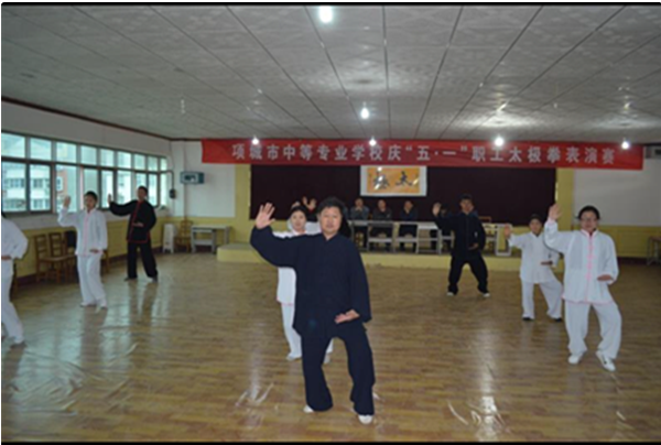 为深入贯彻落实国务院《全民健身条例》和省、市《全民健身实施计划》,充分发挥全民健身活动,打造高素质干部教职工队伍、构建和谐校园、提升身体素质、推动我校快速发展等方面的积极作用,积极引导太极拳全民健身活动规范有序开展,4月4日上午,我校庆“五一”教职工太极拳表演赛在我校办公楼四楼健身室隆重举行。
