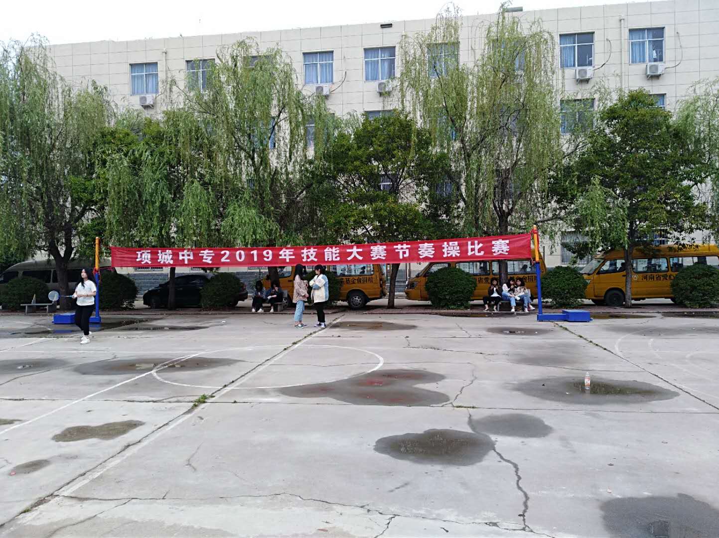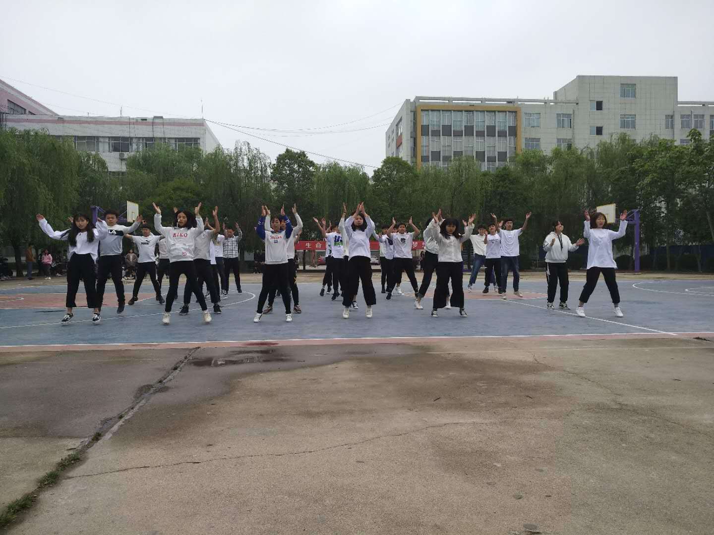 2019年4月28日下午在我校篮球场举办了由体育组承办的2019年职业技能大赛快乐校园类节奏操比赛,此次比赛共有18支代表队参赛。
