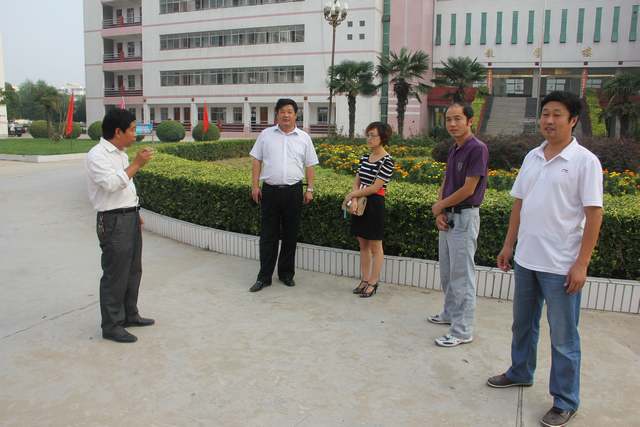 我校全体领导班子成员在校门口喜迎参加社会实践的学子返校。