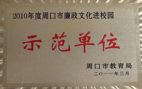 近日,捷报传来,项城中专荣获“2010年度周口市廉政文化进校园示范单位”。