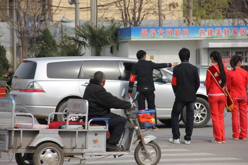 3月30日下午两点半,来自我校各个班级的42名青年志愿者徒步到达本次活动的目的地——公安局北面的十字路口。我校青年志愿者们按照交警同志的指导,分散到各个路口协助指挥交通。