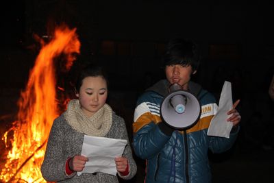 此次篝火晚会是政教处和校团委组织的众多活动中的一个,在这次篝火晚会上除了军训的新生参加外,还有我校的部分老生,他们并为学弟学妹们送来的精彩的节目。歌曲《大海》、三句半《校园麻辣烫》等节目赢得了新生们的阵阵掌声。同时,新生虽然入校的时间不长,但他们也不甘落后,他们带来的歌曲《让世界充满爱》、拉丁舞《恰恰》等也让同学们大大饱眼福。新生精彩的演出,让他们的学哥学姐们也感受到的压力,或许也正是这种压力会给他们更大的动力。新、老生同台演出,其乐融融的气氛,也让我们看到了学校的明天一定能像今晚的篝火一样灿烂辉煌。