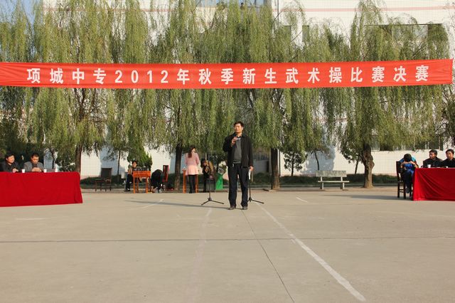 本次比赛分为预赛和决赛两个阶段,12秋19个班级分为4组进行了分组预赛,经过学生会和团委干部的精心组织,最终有13个班级脱颖而出。决赛于11月13日下午在学校篮球场举行,校委会的各位领导亲临现场观赏指导。在比赛现场,伴随着武术操音乐轻快的节奏,学生们精神抖擞,动作整齐划一,一招一式都显得那样刚劲有力。
