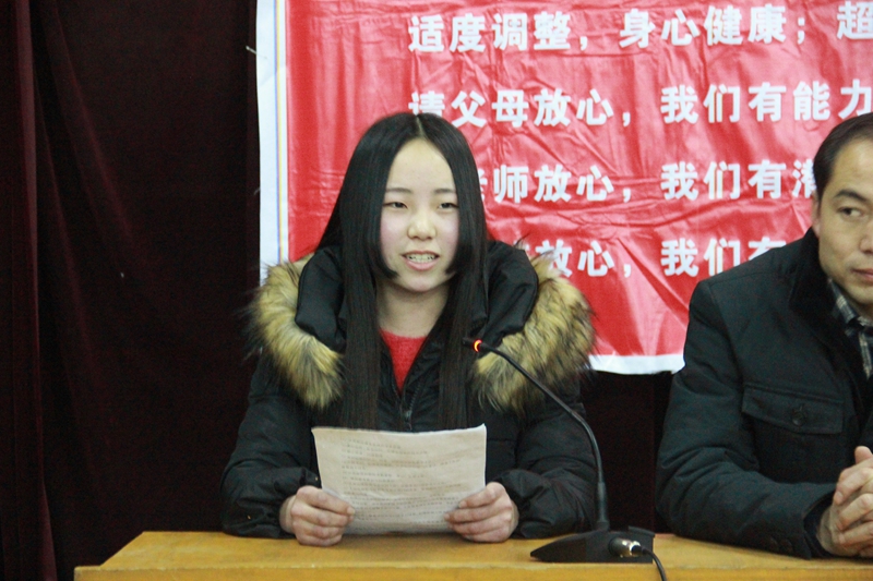 最后高校长代表学校向在高三毕业班辛勤耕耘、无私奉献的老师们表示衷心的感谢和诚挚的敬意!向勤奋学习、顽强拼搏、屡创佳绩的同学们致以亲切的问候!同时在这个特别的日子里,高校长鼓励高三的学子们要勇于面对高考严峻的考验,并要始终不渝的坚持努力。期待高三的学子们能够把最美的风景带到山巅,体验登天的感觉;能够把最灿烂的笑容留到六月,创造六月的辉煌!高校长的话语重心长,饱含了对莘莘学子的深情,感染着现场每一位高三的学生。