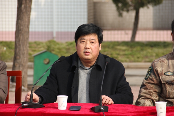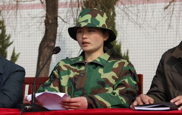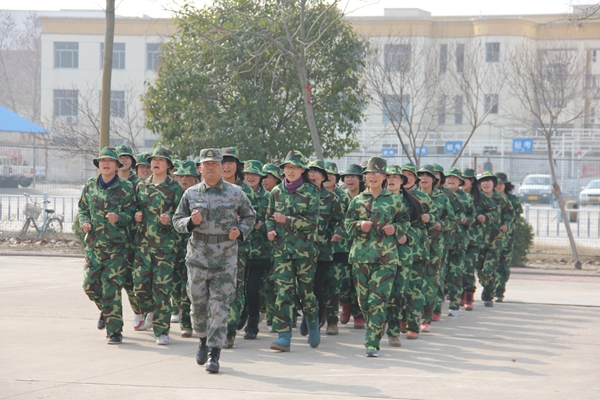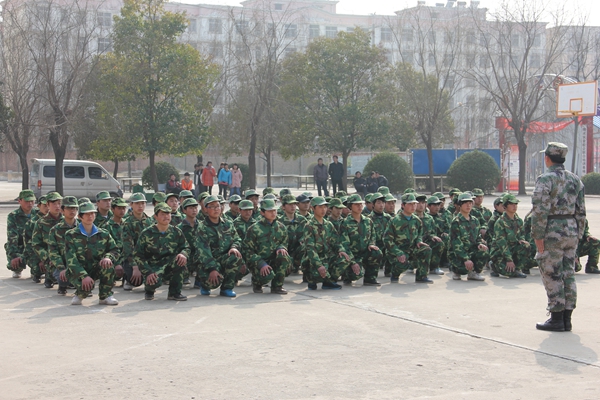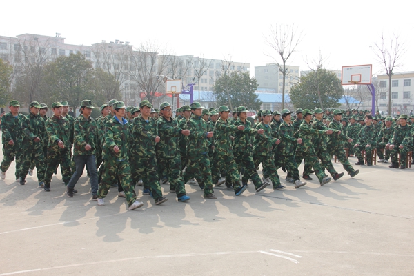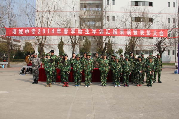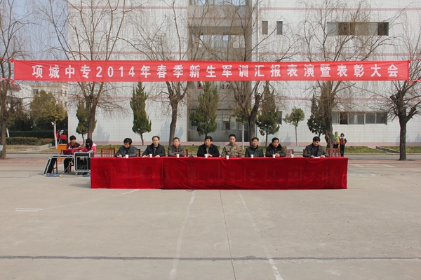 2月20日下午14:00时,我校2014年春季新生军训汇报表演暨表彰大会在校篮球场举行。到会领导有:负责学校全面工作的高校长,主管工会、财务、后勤工作的潘校长,教务工作的张校长,主管政教、团委工作的付校长,主管招生、就业、电大、函授工作的陈校长,政教处张主任,校团委书记汪长亮,周口军分区教导队的马队长。全体新生向学校领导和周口军分区教导队的首长汇报展示了军训成果。