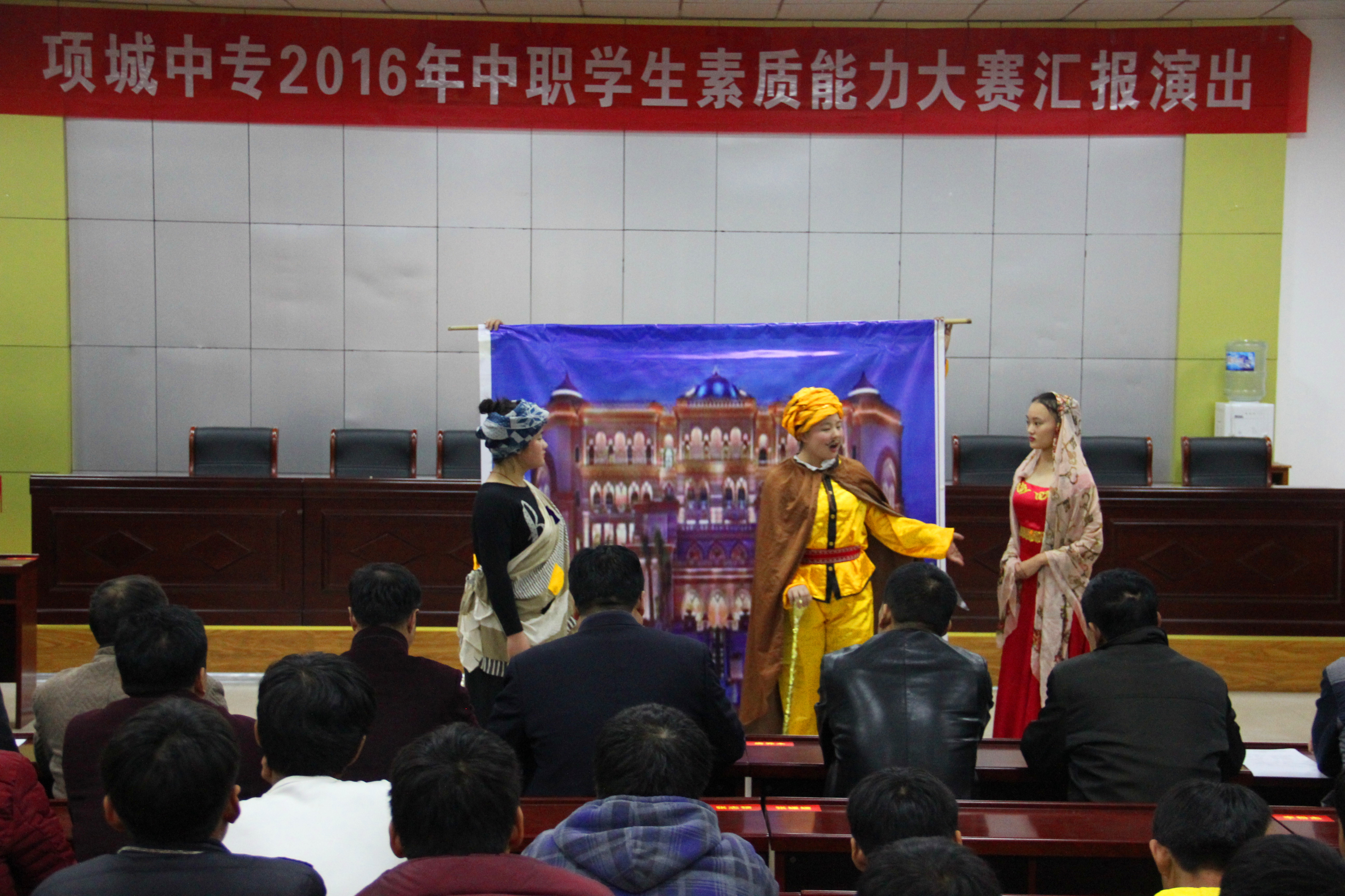 为切实加强文化基础教育和中华优秀传统文化教育,努力提升中等职业学校学生基本素质,在全省中等职业学校学生素质能力大赛中取得优异成绩,11月13日,我校在五楼会议室对参赛节目进行了展演。校长高必兴,书记马玉红出席展演会场,全校领导班子、中层领导和部分学生代表参加会议。
