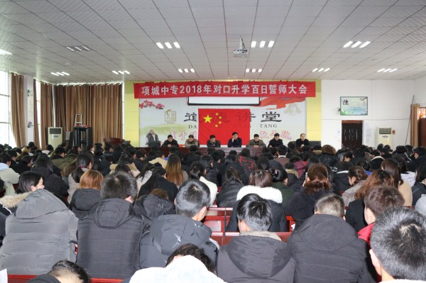2018年3月7日,为鼓舞高三师生奋战高考士气,项城中专隆重举行2018届高三百日誓师大会,全校高三年级师生齐聚学校大会堂,擂响了百日冲刺战鼓,共同见证这一激动人心的时刻。