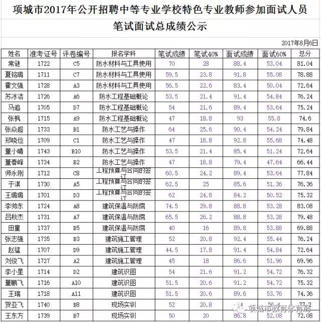 项城市2017年公开招聘中等专业学校特色专业教师参加体检人员情况公示 ···