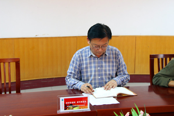 学生演讲比赛中 评委认真评选 为推广全国通用的普通话,增强全校师生的语言规范意识和推广普通话参与意识,促进推广普通话和···