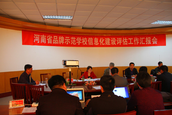 汇报会现场 评估组查看信息中心 评估组在实训中心查看 4月17日,省教育厅中职品牌示范校信息化建设评估小组施···