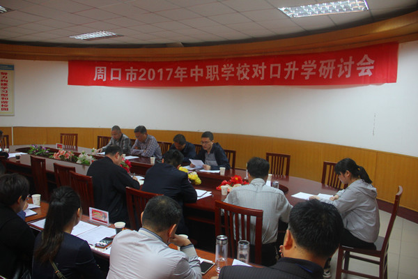 研讨会现场 张庆生主任讲话 4月19日上午,周口市中职学校对口升学研讨会在项城中专二楼会议室召开。周口市教体局职···