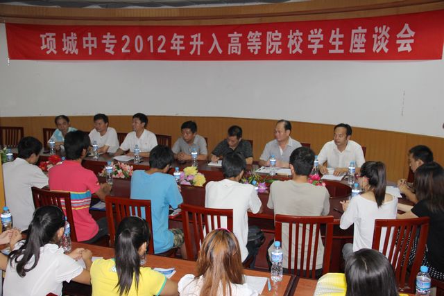 本站讯(通讯员 龙启冲)8月18日,项城中专在学校办公楼二楼会议室举行2012年升入高等院校学生座谈会,学校副校长王云昭、张锦军···
