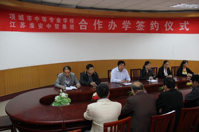 2013年5月8日上午9:30分九州网页版与淮安中哲集团校企合作签约仪式在九州网页版办公楼2楼会议室隆重举行。项城市中等···