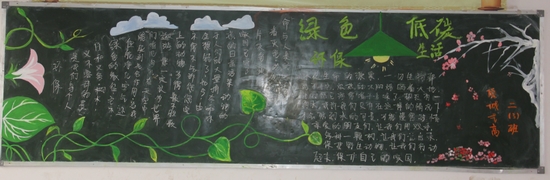 保护环境是人类有意识地保护自然资源并使其得到合理的利用,防止自然环境受到污染和破坏;对受到污染和破坏的环境做好综合的治理,以创造出适合于人类生活、工作的环境,协调人与自然的关系,让人们做到与自然特别和谐相处的概念。项城中专各个班级开展的以环境为主题的各种活动,下面是各班以环保为主题的黑板报作品。