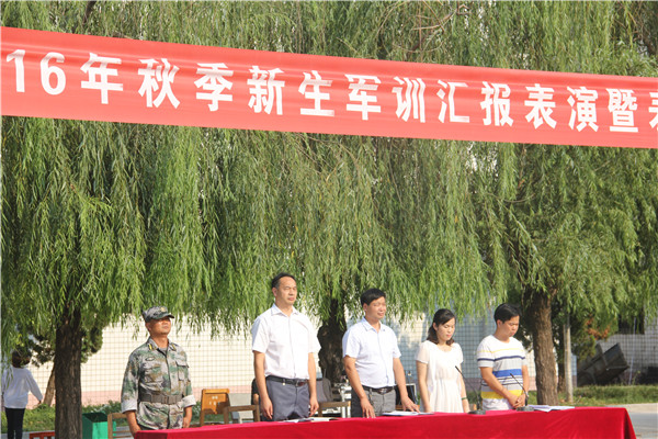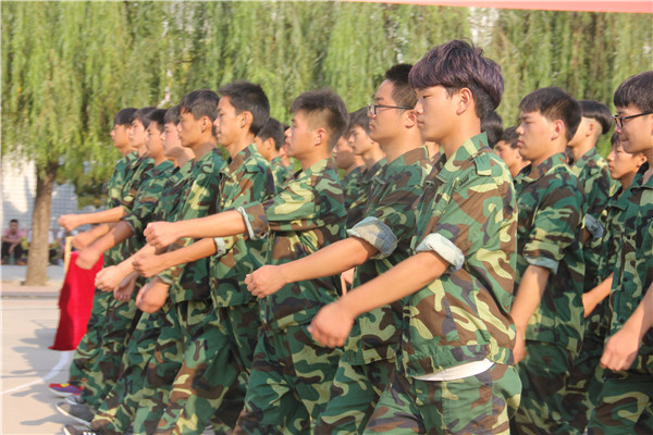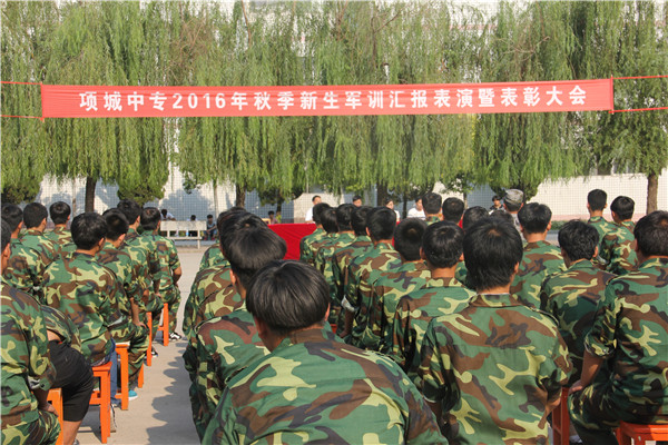 开学伊始,我校沿袭新生军训的传统,对16秋新生进行了为期半个月的军事训练。本期军训工作,政教处、校团委提出了“军纪如铁,意志如钢,情系中专,创造辉煌!”的训练口号,创新开办了“军训之窗”板报,并在军训中开展了“训练标兵”、“内务整理标兵”、“优秀青年志愿者标兵”评选活动,一天一评选,一天一点评,激发了同学们的训练热情,提升了训练效果。辛苦的训练终于换来了汇报表演的圆满成功。新生们在军训汇报表演中完美的展示了他们的训练成果,体现出了中专学子奋发向上的精神面貌。让我们一起祝愿这些莘莘学子在项城中专放飞梦想,扬帆远航。