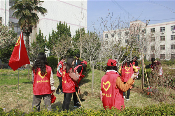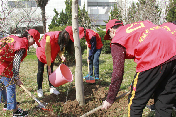 春天渐到,万物复苏,大地上的每一个角落都充满了春天的气息。今年植树节又迎来了崭新的一年,三月十一日在校团委的带领下我校的青年志愿者部组织的志愿者于早九点在第一办公楼集合,参与志愿植树活动。不管男生还是女生,他们都很认真的对待这次活动,尽管那片土地的地质有一点硬,树坑很难挖,很多男生因为帮忙挖树坑手都磨出水泡来了,但是没有一个人抱怨过。因为他们知道他们不仅仅是在为我们国家作贡献,同时也是在为他们自己生长、生活的环境打基础。