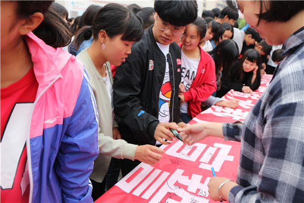 集会上政教处主任向学生们介绍了我国近年来发生的多起中小学生溺水事件,并组识学生一起学习了溺水致死原因、症状、自救与救护,如何防溺水以及遭遇溺水该如何自救等相关知识。最后我校青年志愿者进行了宣誓、签定活动。