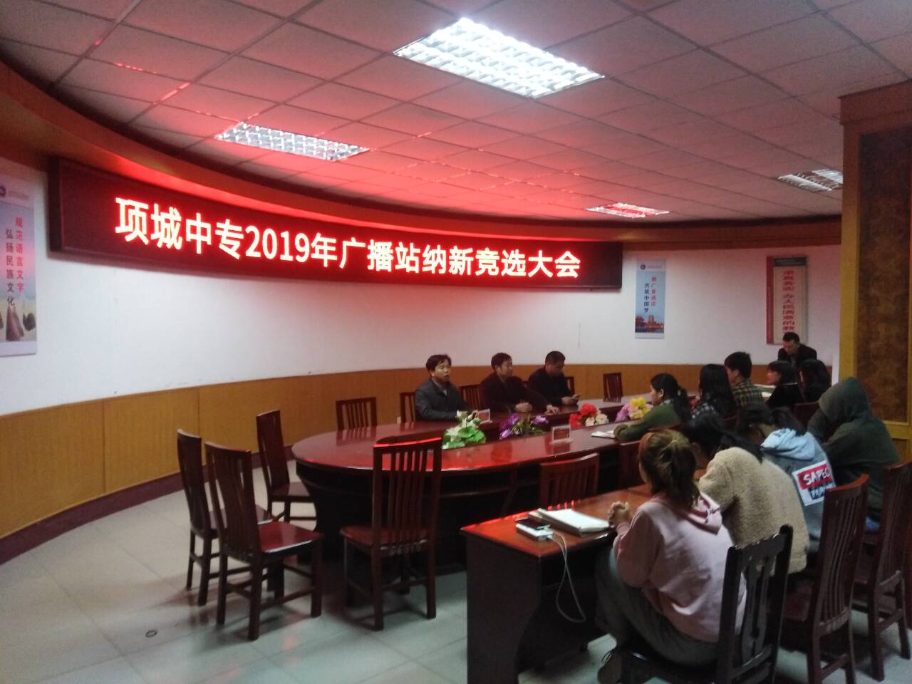2019年4月8日,我校广播站进行纳新选拔比赛。此次纳新活动由校团委精心策划并组织,由广播室教师及广播站老学员担任考官,目的是吸纳全校的优秀人才加入校广播站,同时也给拥有广播梦的同学们提供一个展示自我的平台。本次活动得到了全校学生的热烈响应,每一位同学都积极认真对待此次活动,做好了充分的准备,以极高的热情前来参加。