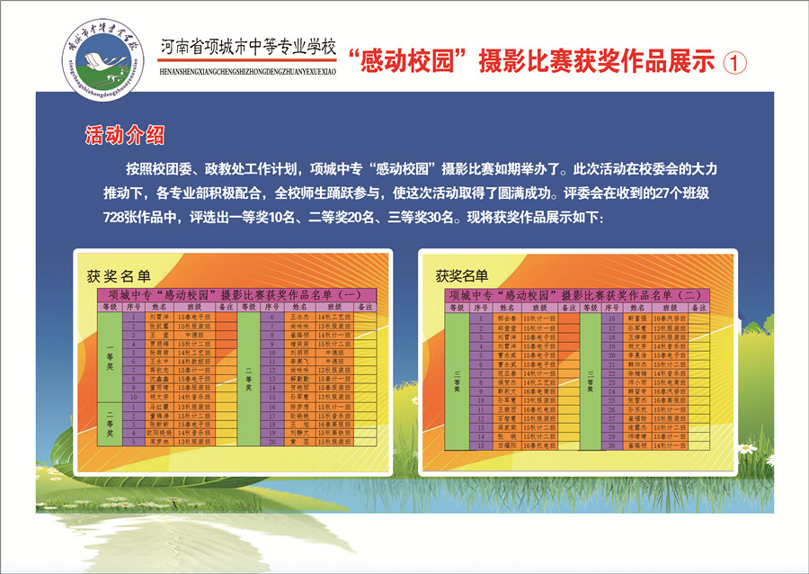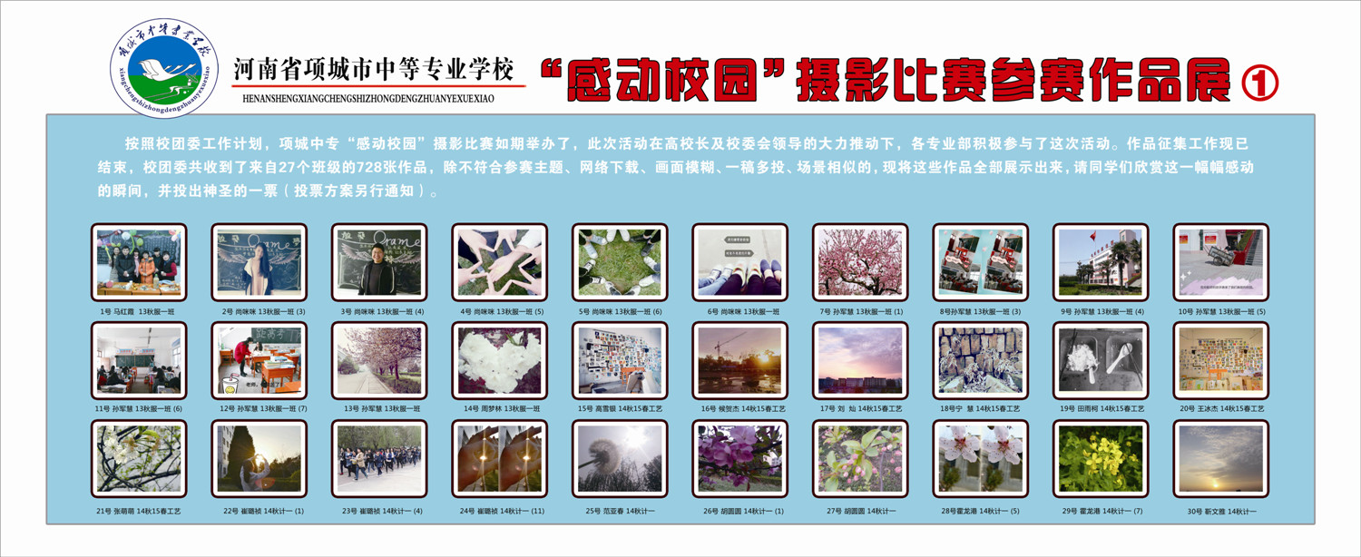 按照校团委工作计划,项城中专“感动校园”摄影比赛如期举办了,此次活动在高校长及校委会领导的大力推动下,各专业部积极参···