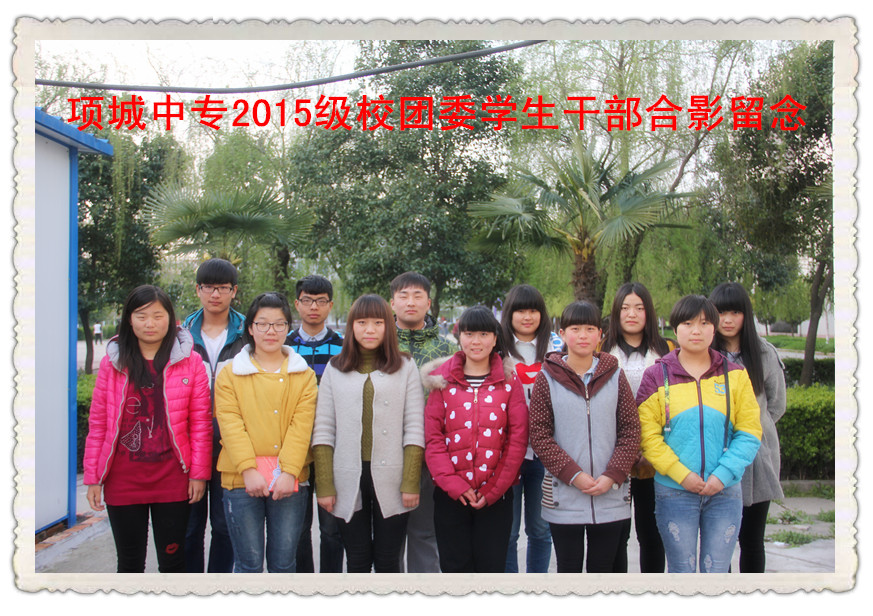 二排(从左至右):王有帝(14春机电班) 夏超杰(15春电子商务班) 张留彬(14春计一班) 王慧芳(12秋计一班)···