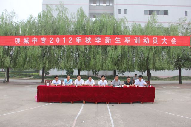2012年8月18日上午,秋风送爽,丹桂飘香,项城中专2012秋季新生军训动员大会在学校篮球场隆重召开,参加会议的领导有副校长潘···