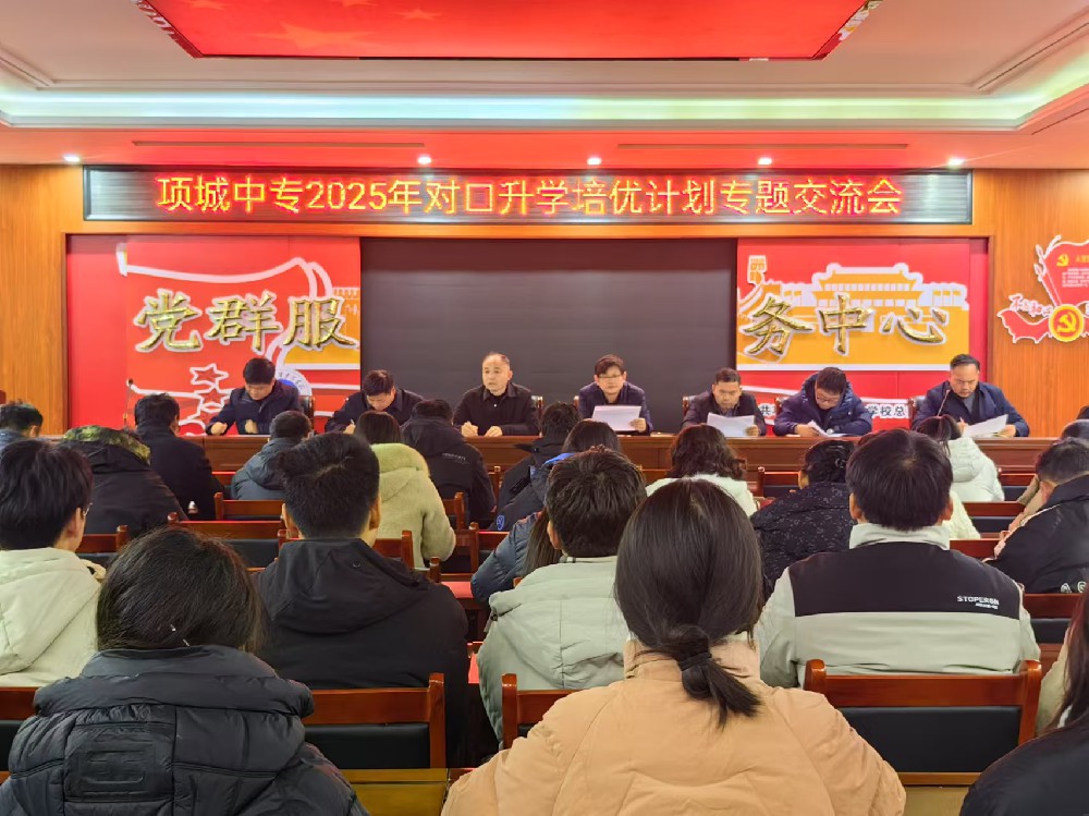 为做好学校对口升学备考工作,推动学校对口升学班教学教研改革,促进教师交流,提升教育教学质量。2025年12月4日下午,项城中专举行了2025年对口升学培优计划专题交流会。学···