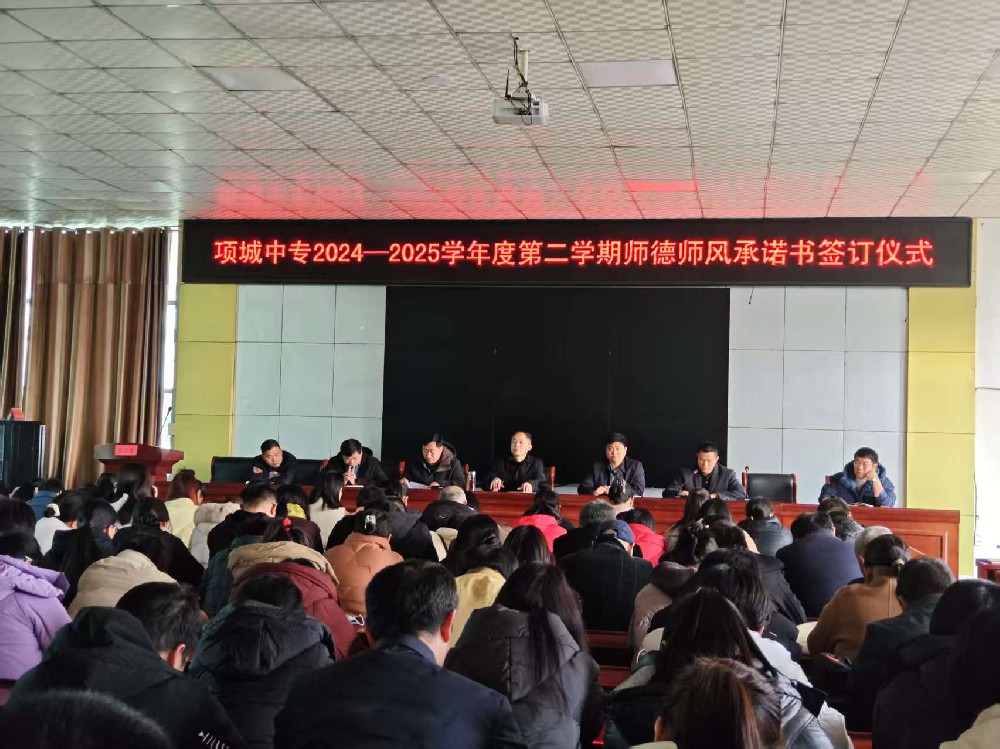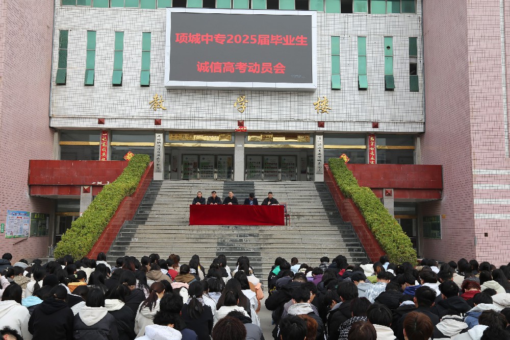 2025年3月13日,项城中专教学部组织开展2025年高考诚信教育暨动员大会。项城中专校长陈新峰、副校长周振伟、孙光综、赵鹏程、招生办主任陈放等参加会议。会议以“诚信为本,···