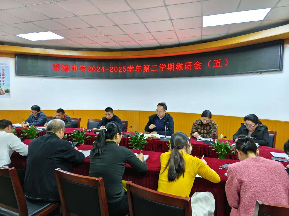 2025年4月7日上午,项城中专在办公楼二楼召开本学期第五次教研会。参加会议的有副校长周振伟,教务处主任师群力、副主任田秀灵、贾俊霞,教研主任李党恩、副主任郭晓辉及各···