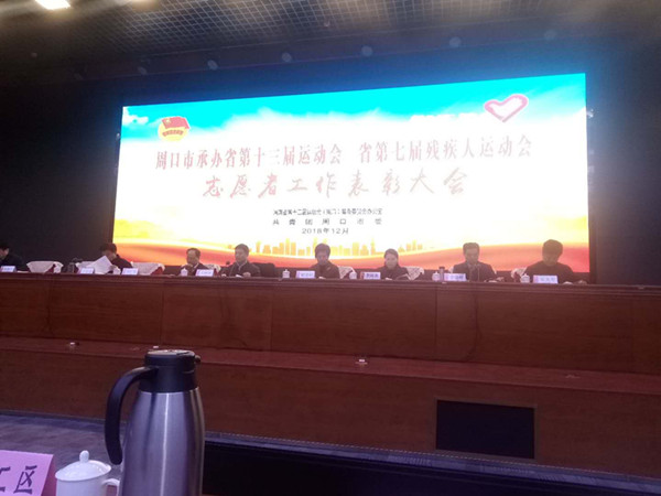 12月27日上午,周ロ市承办省第十三届运动会、省第七届残疾人运动会志愿者工作表彰大会在周口市行政服务中心综合楼二楼会议室召开。大会上···