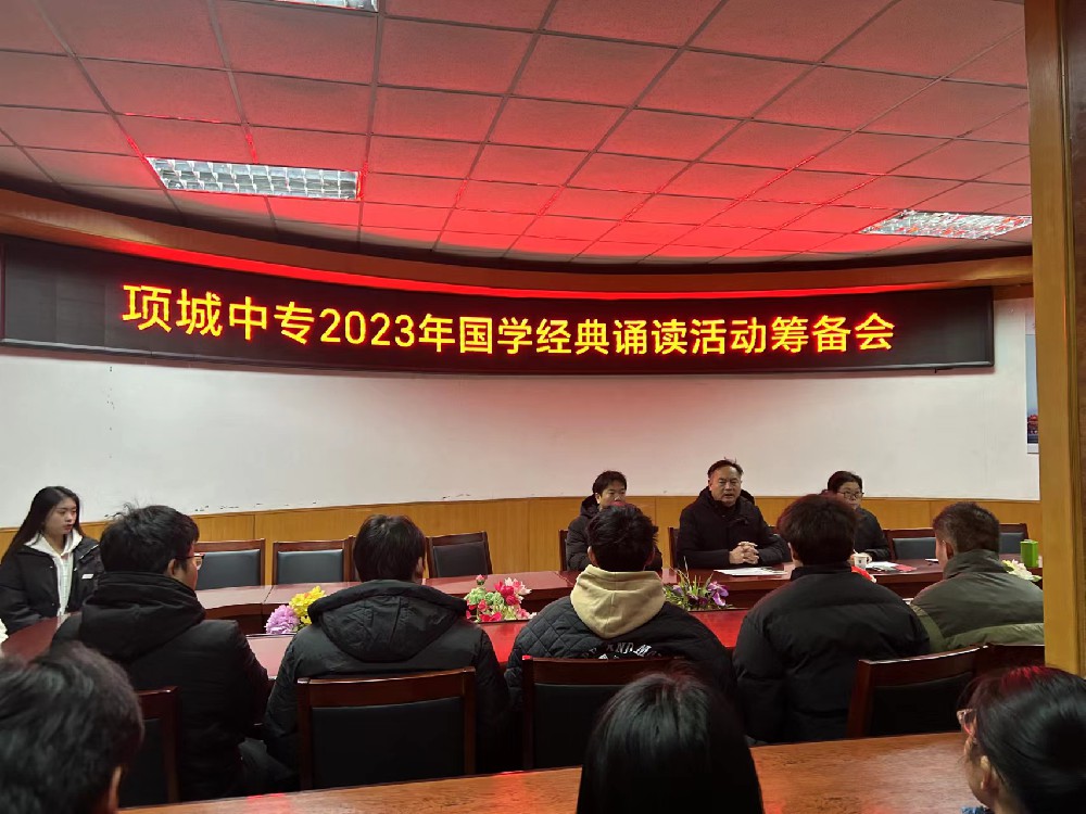 为了更好安排落实项城中专2023年国学经典诵读活动相关事项,21日上午,在办公楼二会议室召开大赛筹备会。教务处主任师群力、副主任田秀灵、贾俊霞、政教处主任汪长亮及学生···