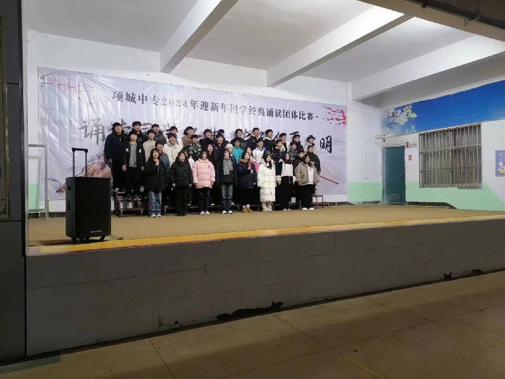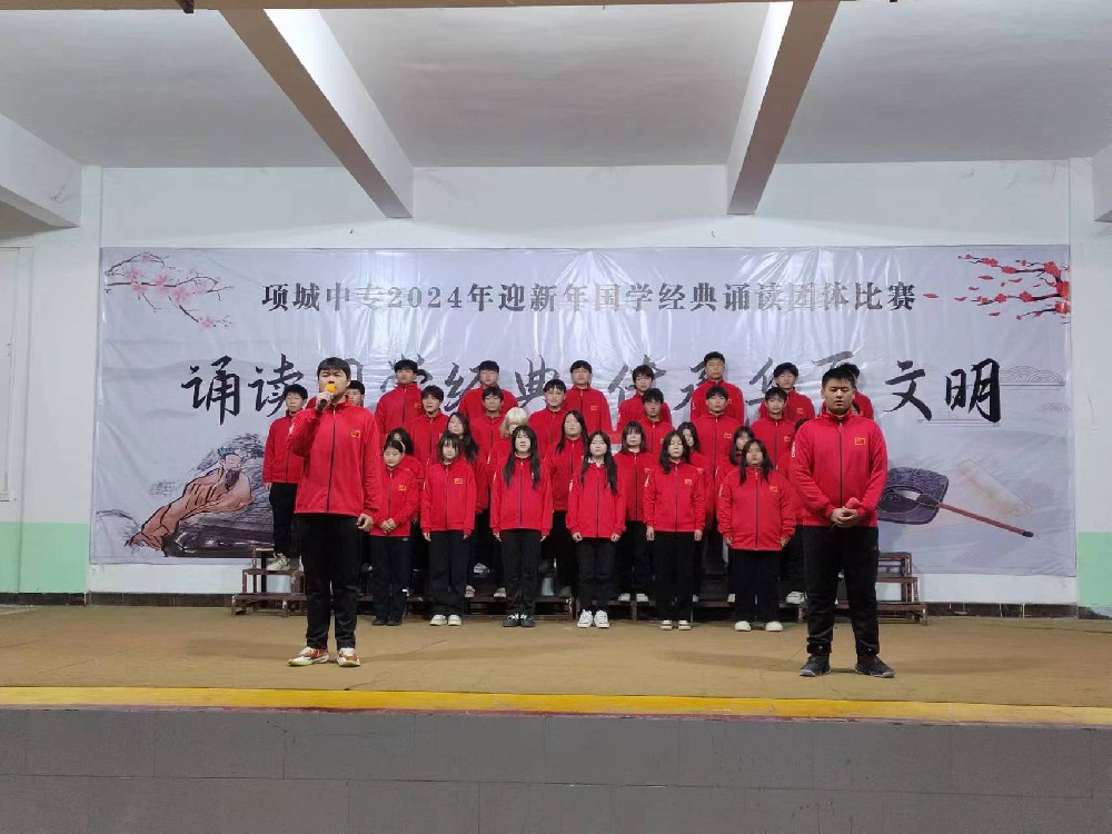 项城中专举行2024年迎新年国学经典诵读团体比赛 “君不见,黄河之水天上来,奔流到海不复回。君不见,高堂明镜悲白发,朝如青丝暮成雪········”随着一阵阵声···