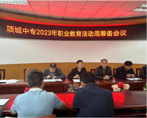 项城中专召开2023年职业教育活动周筹备会 5月8日上午,项城中专在二楼会议室召开2023年职业教育活动周筹备会,副校长王云昭、张锦军、陈新峰、张成礼出席会议,各专业···