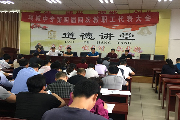 项城中专召开第四届四次教职工代表大会于2018年5月24日在校五楼会议室召开。本次大会应到教职工代表69人,实到教职工代表52人,参会人数符合法定人数。